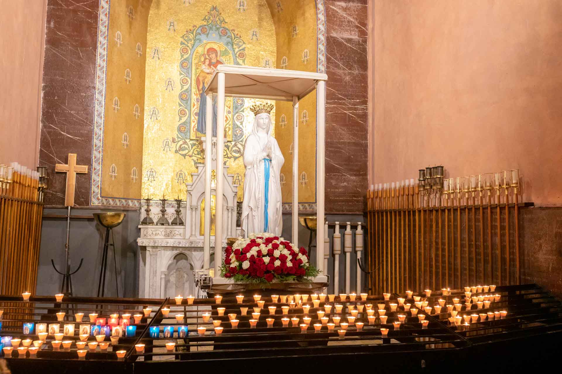 10h00 : Départ des groupes dans le Sanctuaire pour faire les gestes de Lourdes (rocher, eau, cierge) et confessions dans l’église Sainte Bernadette.