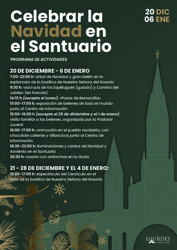 A finales de diciembre, el Santuario se llena de vida con numerosas celebraciones y actividades que preparan la Navidad y la llegada del Salvador. Vengan a experimentar el nacimiento de Jesús en Lourdes, un lugar profundamente amado por Dios.