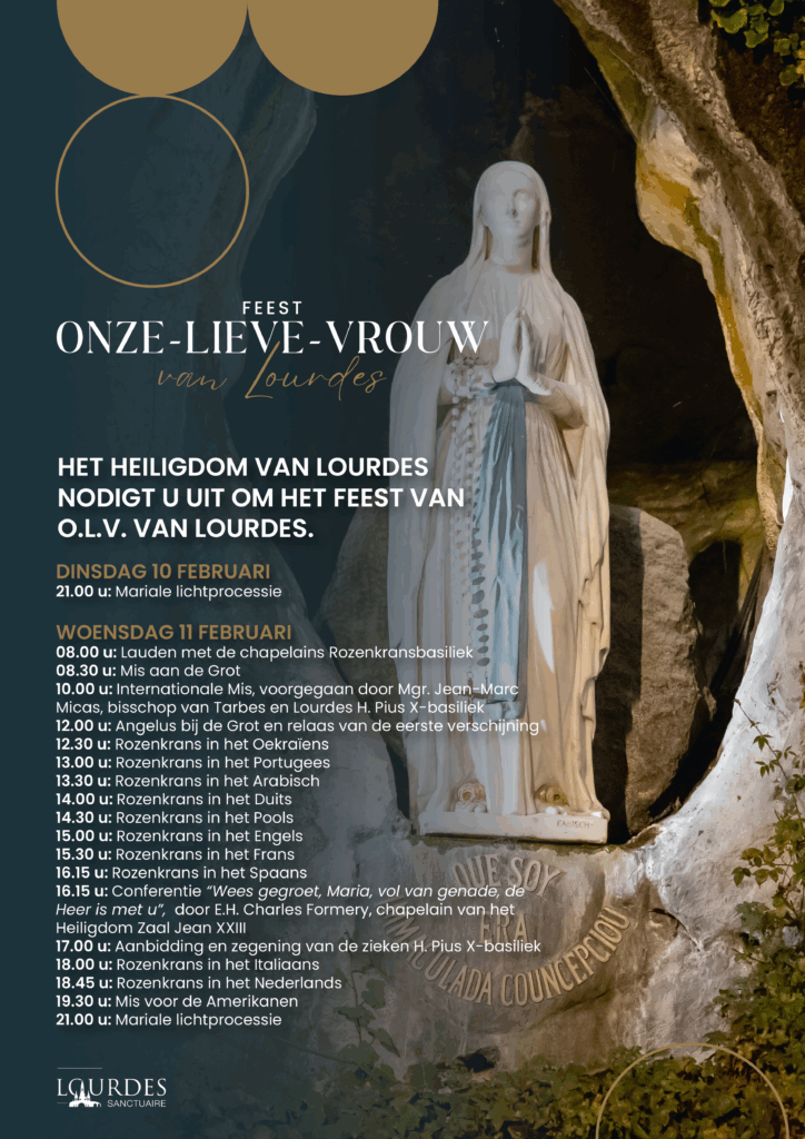 Het Heiligdom van Lourdes nodigt u uit om het feest van O.L.V. van Lourdes bij de Grot van Massabielle te vieren. Duizenden pelgrims worden er verwacht om samen te bidden en O.L.V. te vieren. Kom dus dit mooie feest vieren op de plek waar de zieken altijd de eerste plaats hebben.